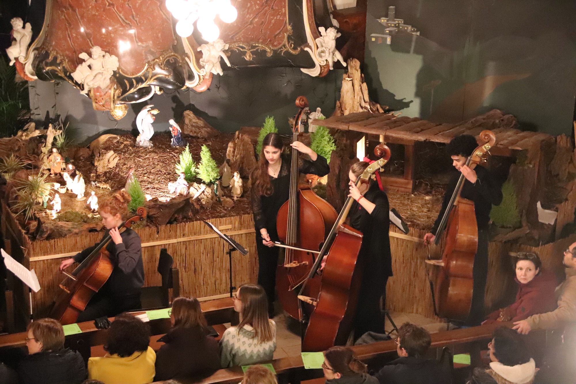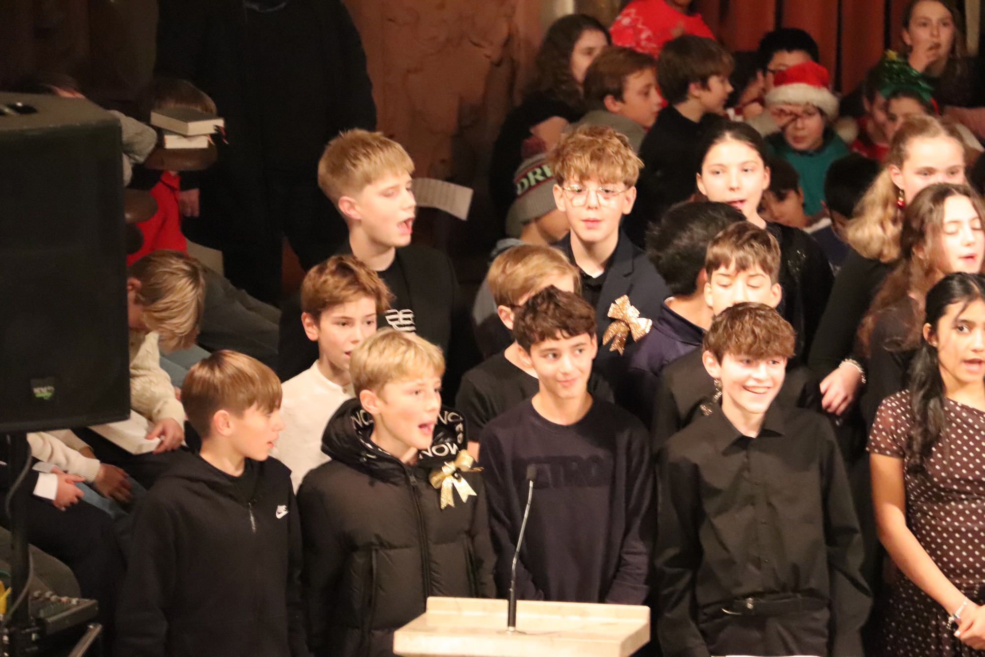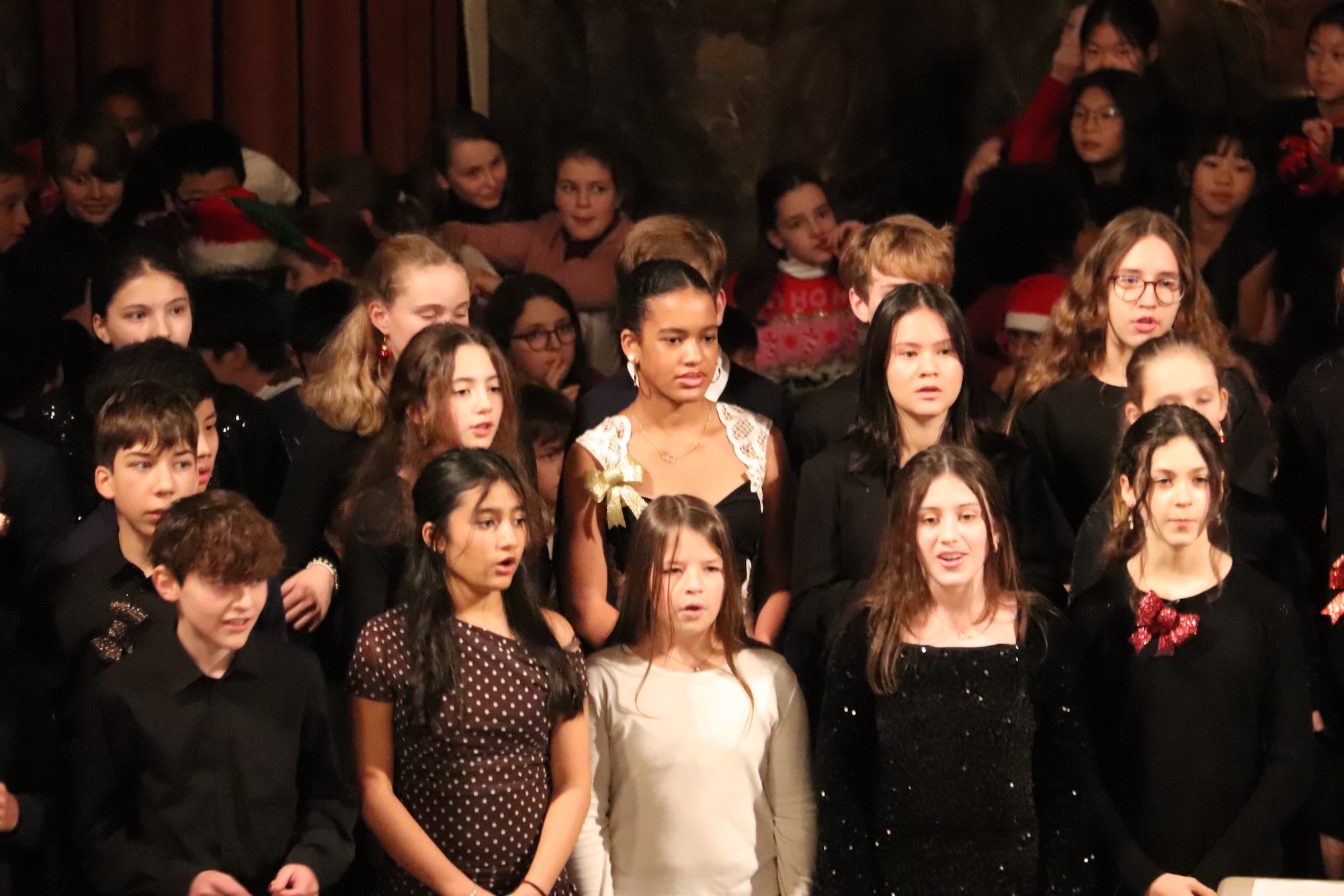 Der Kleine Chor, geleitet von Frau Büttner, eröffnete seinen Auftritt mit „Rudolph, The Red.Nosed Reindeer“ als Einlauflied, gefolgt von „Snow On Snow“. Die Kinder füllten mit ihrer Stimmgewalt den sakralen Raum mühelos aus. Mit „Leise rieselt der Schnee“ und dem temperamentvollen „Feliz Navidad“ spannen sie einen musikalischen Bogen von deutscher Tradition bis zu lateinamerikanischer Lebensfreude – und rissen das Publikum sichtlich mit.