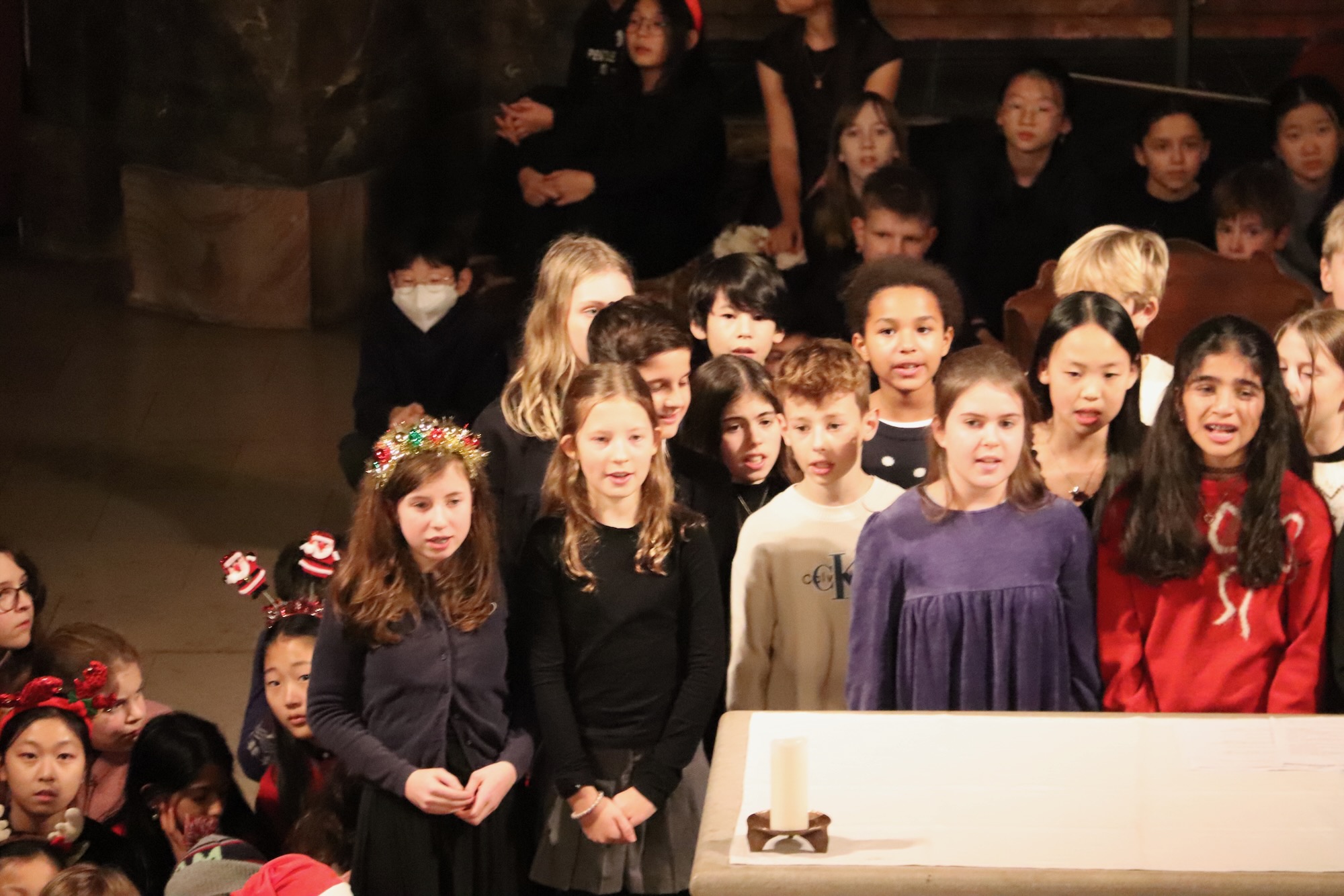 Eine Stufe ambitionierter präsentierte sich der Mittelstufenchor, ebenfalls unter der engagierten Leitung von Frau Büttner. Nach dem stimmungsvollen Einlauflied „Happy X-Mas“ von John Lennon folgte „Cold Snap“ und das klassische „Fröhliche Weihnacht Überall“. Mit Brenda Lees zeitlosem „Rocking Around The Christmas Tree“ und dem bewegenden „Candle Of Hope" bewies der Chor seine stilistische Vielseitigkeit.