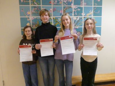 (von links nach rechts: Anna Hühnert (6f), Ida Bruhn und Henrike Berner (7f), Zoe Dost (6d) bzw. Hannah Schwarze und Paulina Högn (8e))