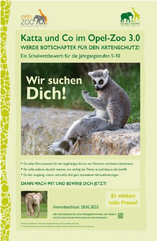 Spannende Erfolge beim Schulwettbewerb „Katta & Co im Opel-Zoo 3.0“!